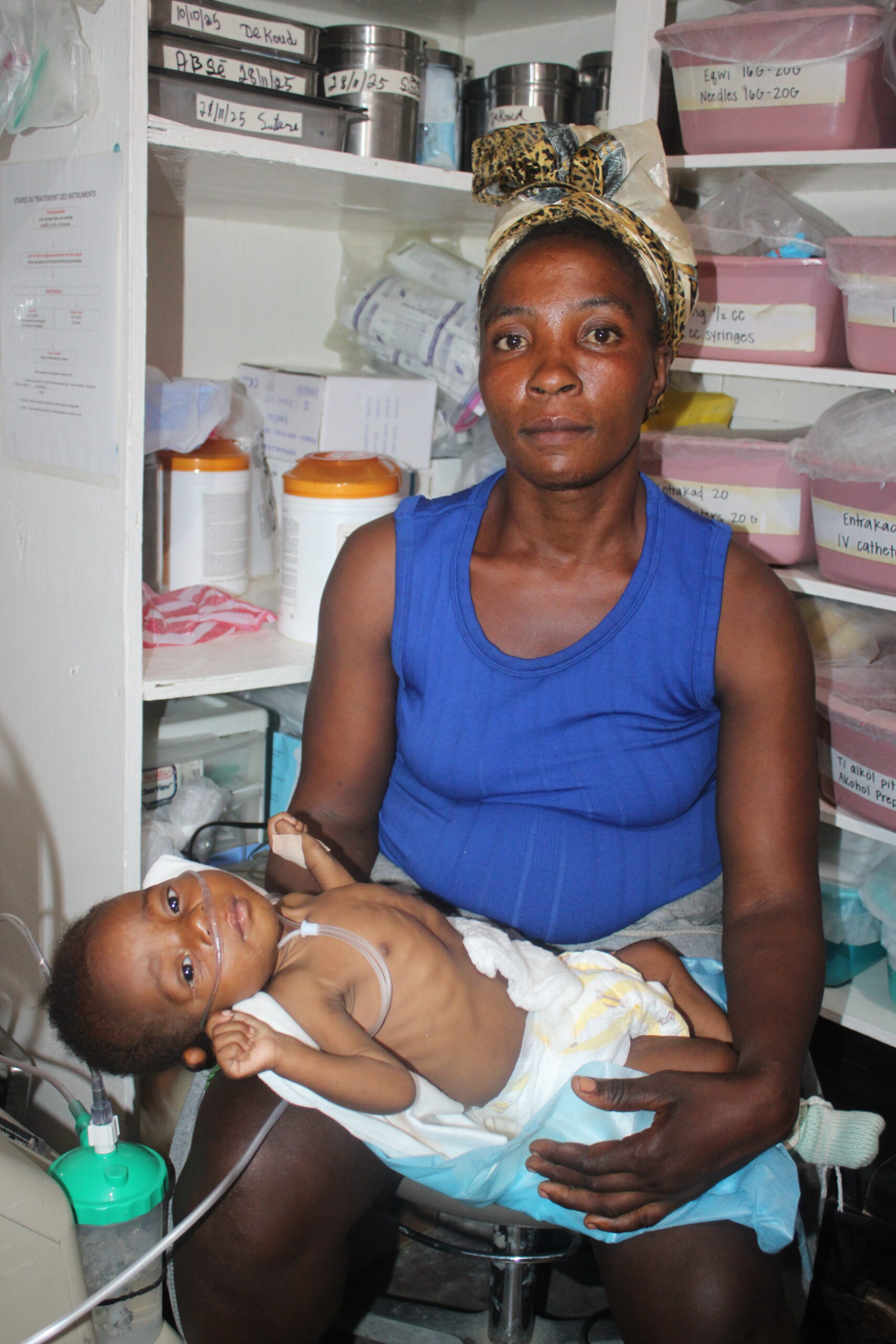 Gilson can hold his head up and lift his arms but cannot roll over or sit independently. He was assessed at -4 SD for severe malnutrition, without edema. He received oxygen therapy for several days along with necessary medications, and his mother stayed faithfully by his side.
