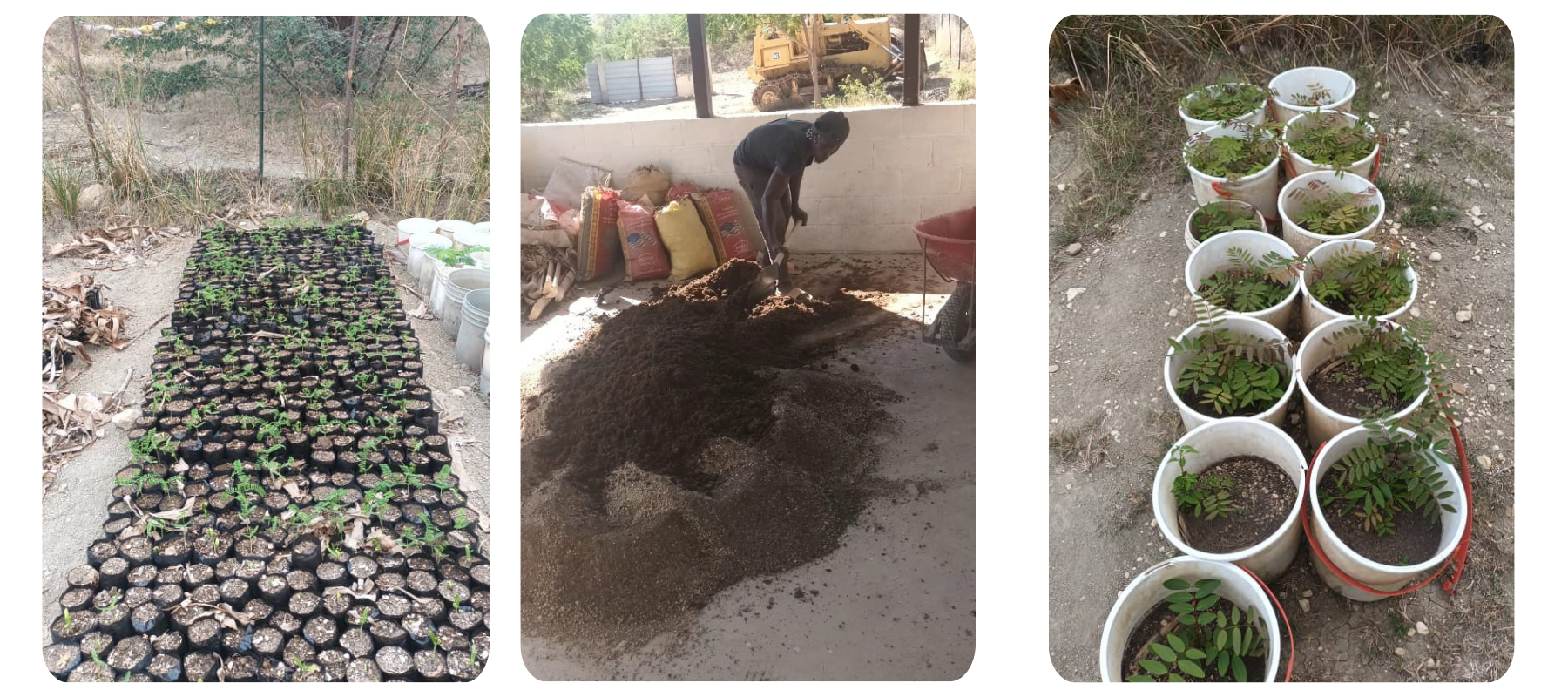 Among the many activities carried out by the group, one of the most important is our nursery. The nursery is the space where we prepare and grow all our seedlings before they are planted in the community. We produce different types of trees, including fruit trees and shade trees, which are planted on the hillsides to help fight soil erosion and protect the land.